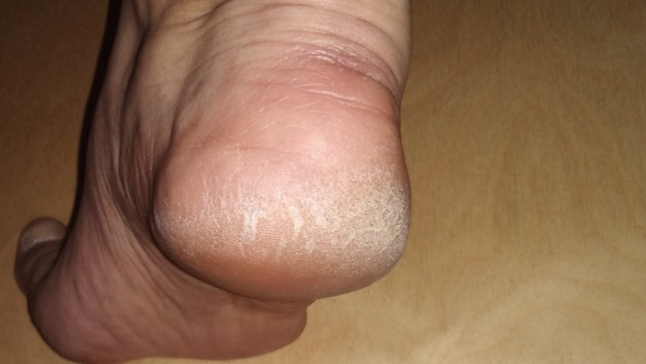 Признак 2: сухость кожи ног и глубокие трещины на пятках